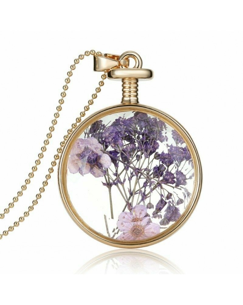 Handmade True dried flower Living memory Glass necklace