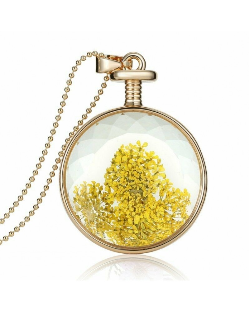 23 körös arany sárga - Forró természetes valódi szárított virággyanta üveg úszó medál medál nyaklánc ajándék