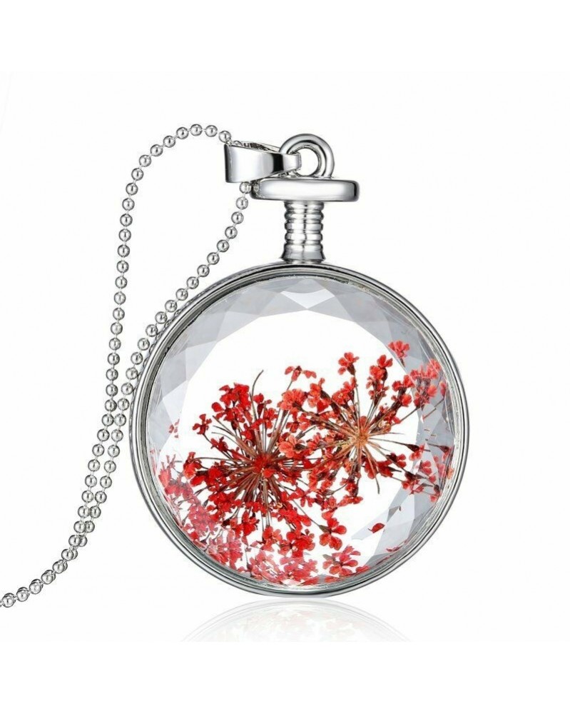 35 körös ezüst rózsaszín - Forró természetes valódi szárított virággyanta üveg úszó medál medál nyaklánc