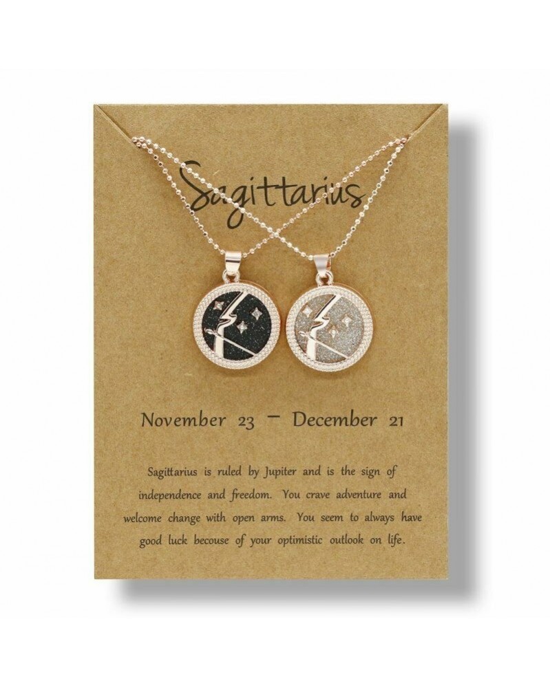 2db Rózsa Arany-Nyilas - 12 csillagképes csillag nappali és éjszakai állatöv jel nyaklánc medál bűbáj arany fojtó