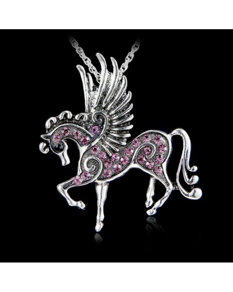 Rózsaszín ló - Retro kristály pillangó madár állatok szitakötő medál nyaklánc lánc party ajándék