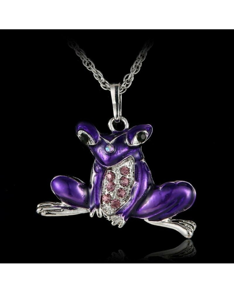 Béka lila - Retro kristály pillangó madár állatok szitakötő medál nyaklánc lánc party ajándék
