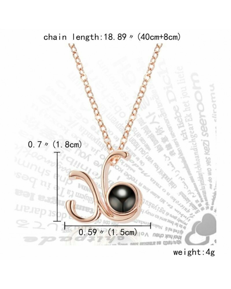 Rose Gold-X (ajándékdobozzal) - 100 nyelv, szeretem U vetítés 26 kezdőbetű medál nyaklánc W / díszdobozban