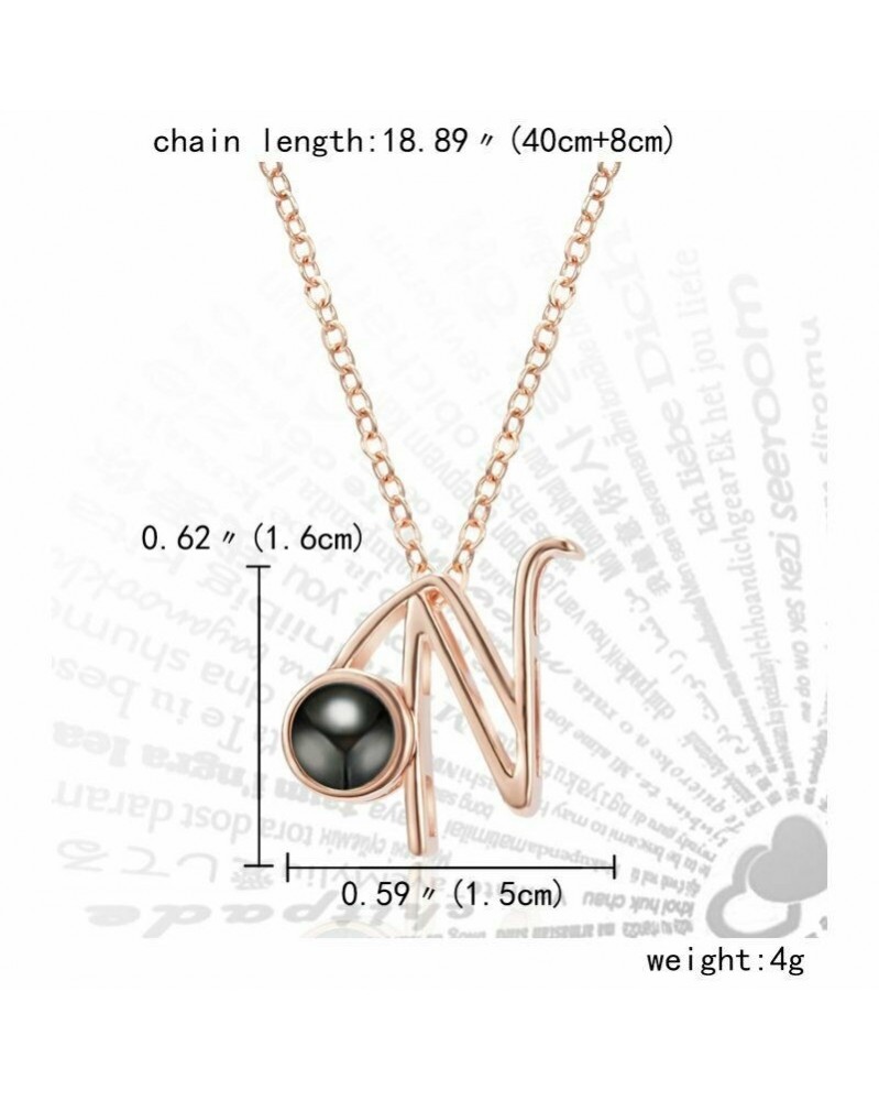 Rose Gold-N (díszdobozban) - 100 nyelv, szeretem U vetítés 26 kezdőbetű medál nyaklánc W / díszdobozban