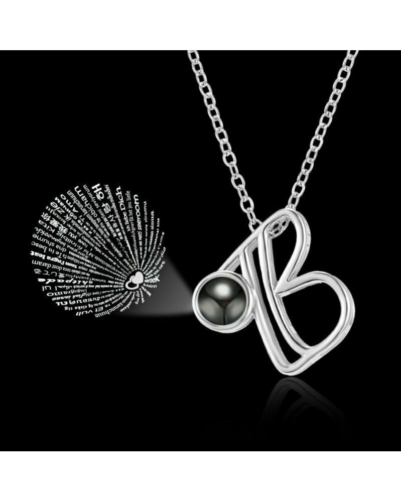 Ezüst-B (ajándékdobozzal) - 100 nyelv, szeretem U vetítés 26 kezdőbetű medál nyaklánc W / díszdobozban