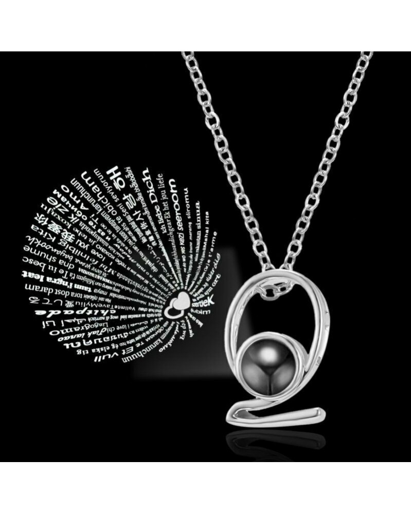 Ezüst-Q - 26 kezdő levél Pillanat 100 nyelv, szeretem az U kivetítő medál nyakláncot