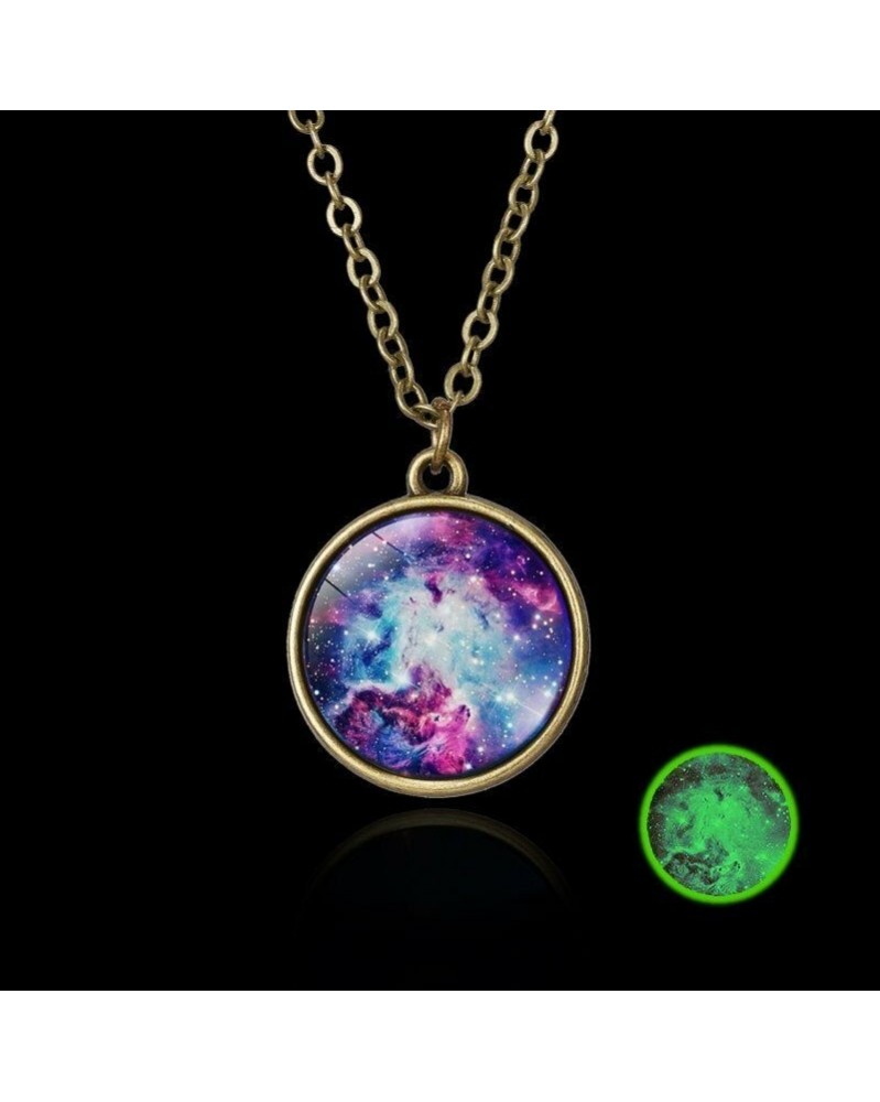 Színes köd - Kétoldalas üveggömb Galaxy Sports Planet medál nyaklánc lánc Unisex ajándék
