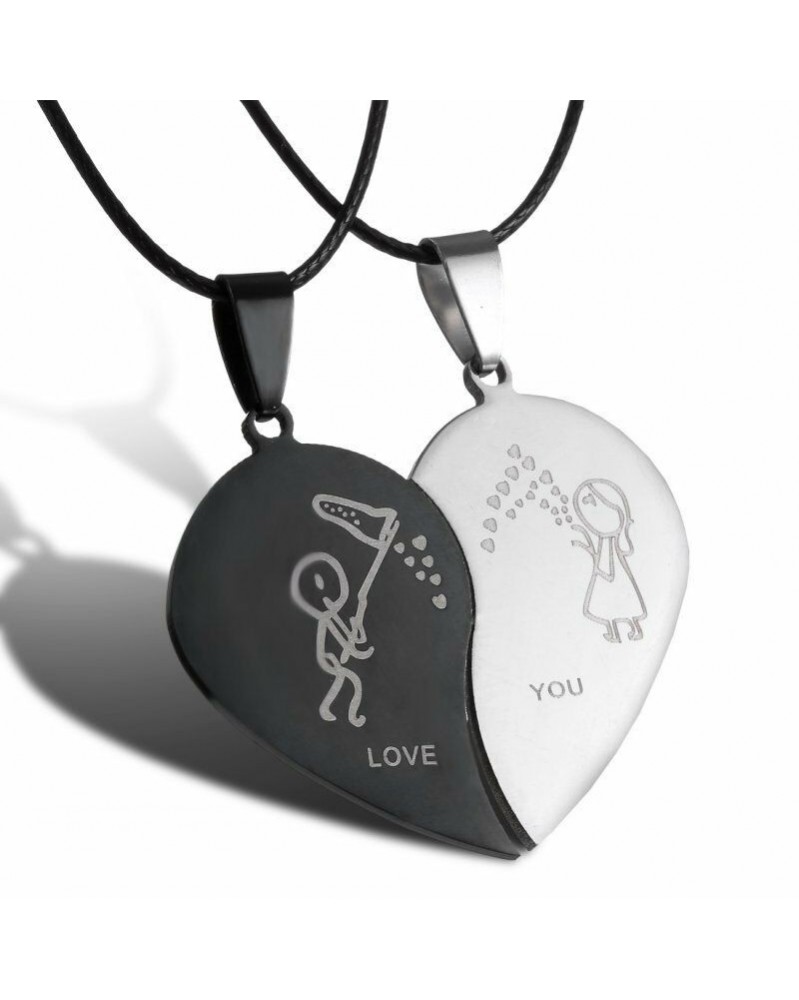 Válassza a 3 lehetőséget - Ezüst rozsdamentes acél férfi női punk nyaklánc medál bőr lánc pár ajándék
