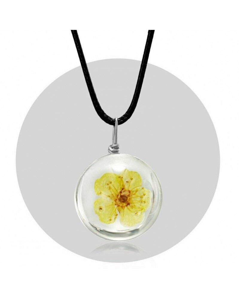 54. sárga virág - Divat kívánság természetes természetes szárított virág gyanta üveg medál nyaklánc ékszer