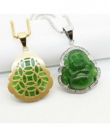 Arany medál lánc - Zöld Achát Buddha medál nyaklánc doboz lánc fojtó ékszerek rozsdamentes acél forró