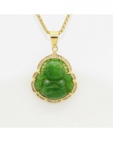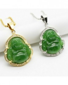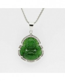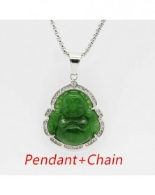 Ezüst Medál Lánc - Zöld Achát Buddha medál nyaklánc doboz lánc fojtó ékszerek rozsdamentes acél forró