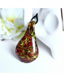 Piros és sárga - Elegáns Murano Lampwork üveg vízcsepp nyomtató medál nyaklánc női ékszerek