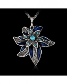 Kék - Divat aranyozott virág szív medál nyaklánc kristály pulóver lánc ajándék forró