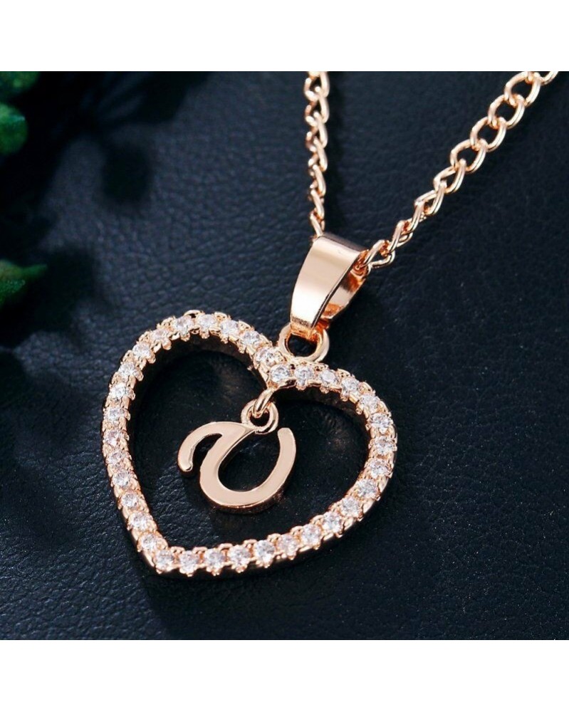 U - 26 betű ábécé AZ rózsa arany kristály szerelem szív medál nyaklánc ékszer