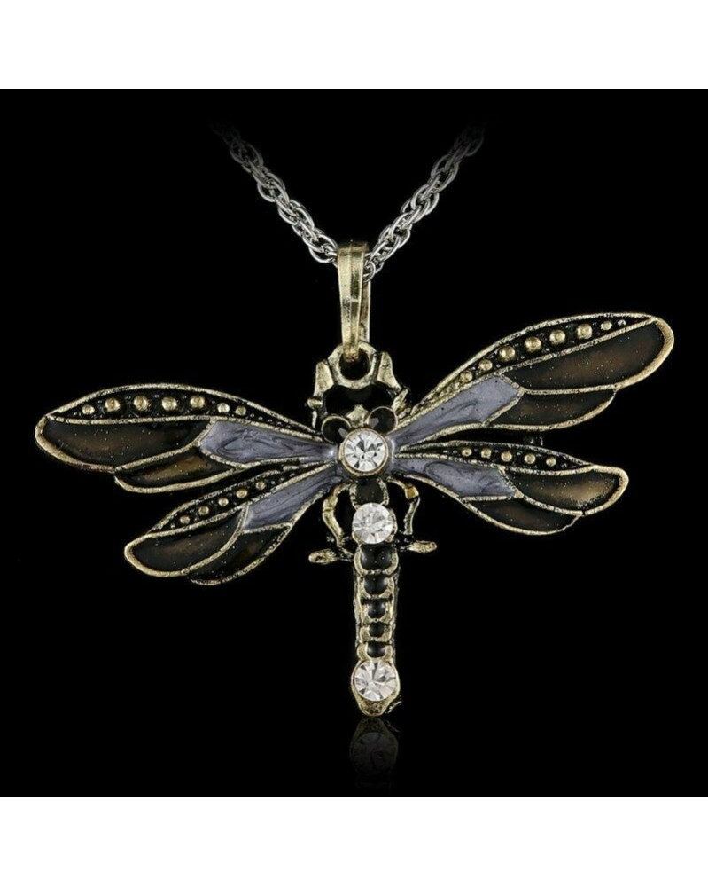 fekete varázsa - Divatállati ékszer kristály szitakötő nyaklánc medál choker pulóver lánc