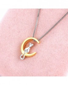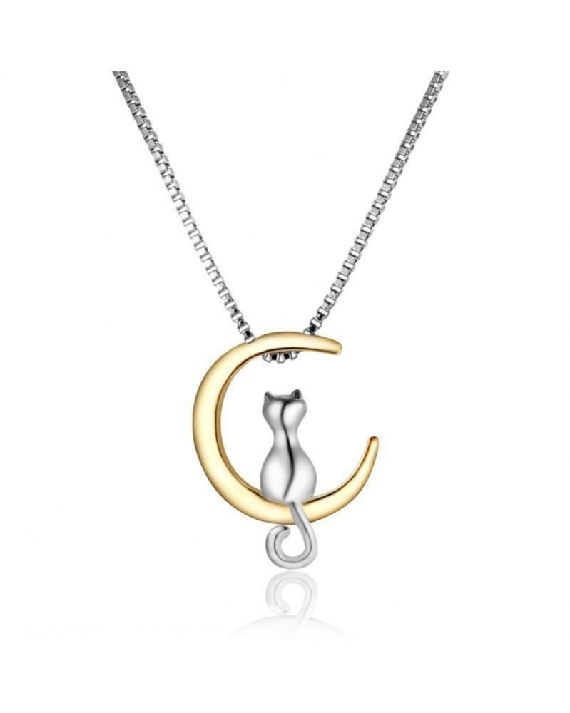 Nincs szín - Ezüst arany Lovely Cat Moon Charm Medál Choker nyaklánc lánc női ajándékhoz