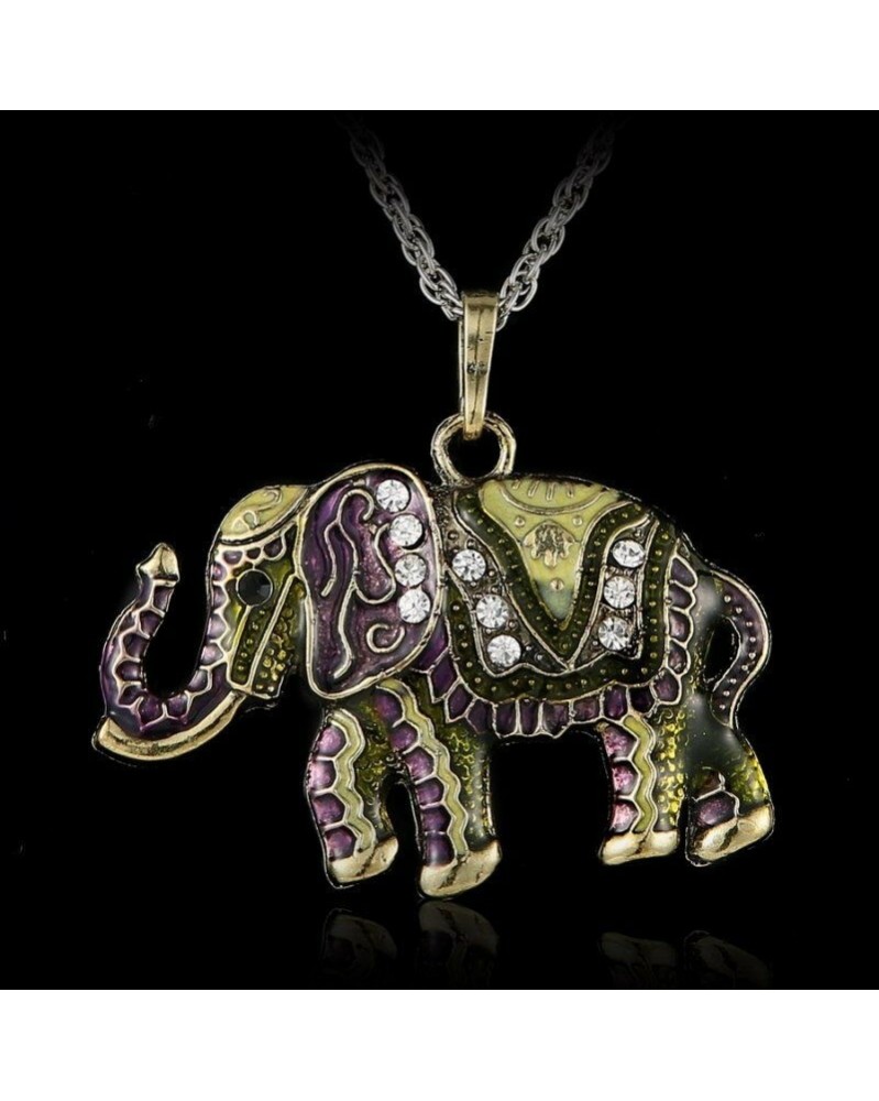 * 13-Zöld kristály elefánt - Retro női kristály zománc pillangós medál nyaklánc pulóver lánc ékszerek