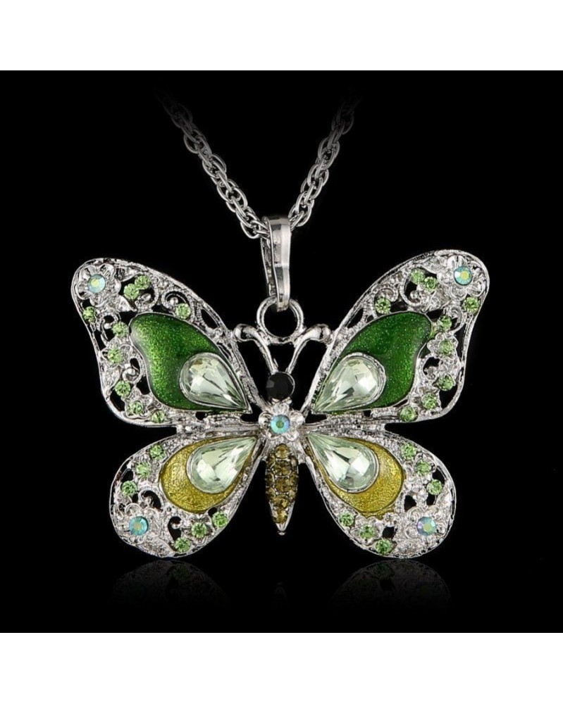 * 6-Zöld kristály pillangó - Retro női kristály zománc pillangós medál nyaklánc pulóver lánc ékszerek