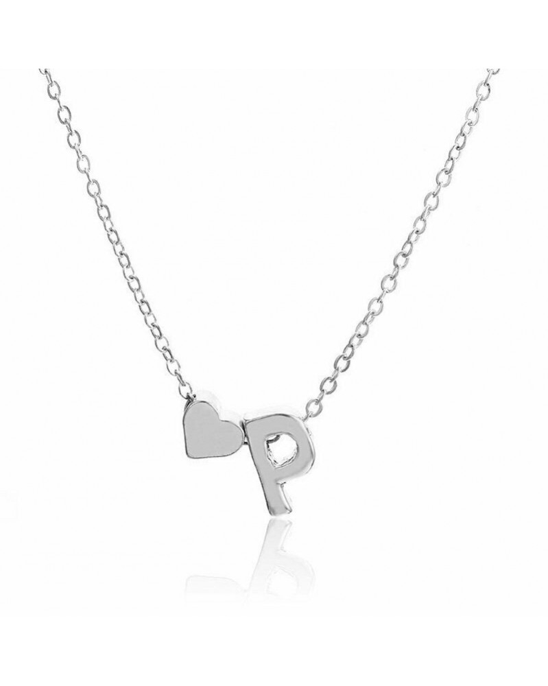 P-Ezüst betű - AZ 26 betű ezüst arany szív nyaklánc choker lánc női medál ékszerek forró