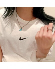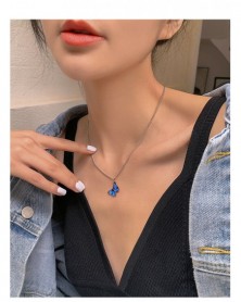 Világoskék - Divatzománc pillangós fojtó nyaklánc medál lánc női esküvői ékszerek ÚJ