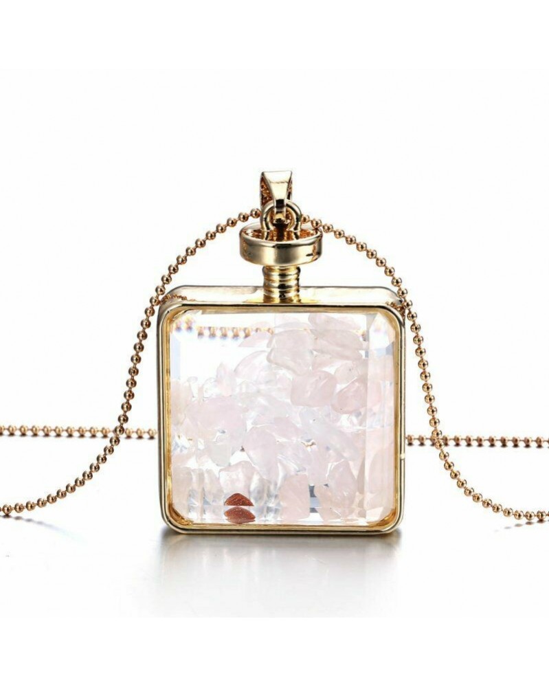 Zöld természetes kő - Bájos nők természetes valódi szárított virág üveg nyaklánc medál szív négyzet alakú