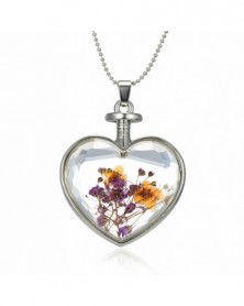 Rózsaszín természetes kő - Bájos nők természetes valódi szárított virág üveg nyaklánc medál szív négyzet alakú