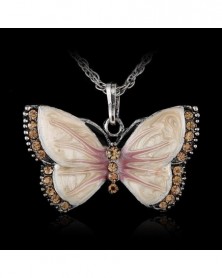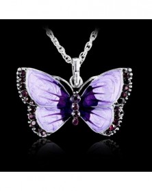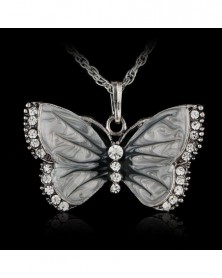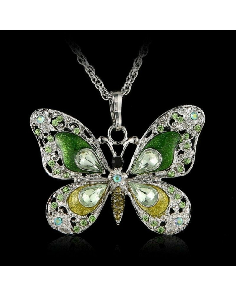zöld kristály - Forró női divat ékszerek zománc pillangó kristály medál nyaklánc ezüst lánc