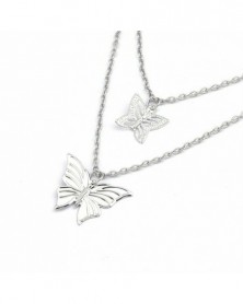 Ezüst - Divat pillangó medál nyaklánc kettős réteg choker lánc női ékszer ajándék