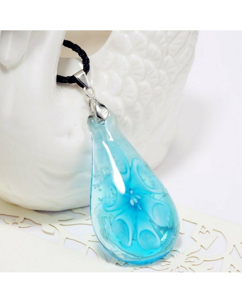 Ég kék vízcsepp virág - Női Lampwork Murano üveg vízcsepp levél virág nyaklánc medál báj ajándék