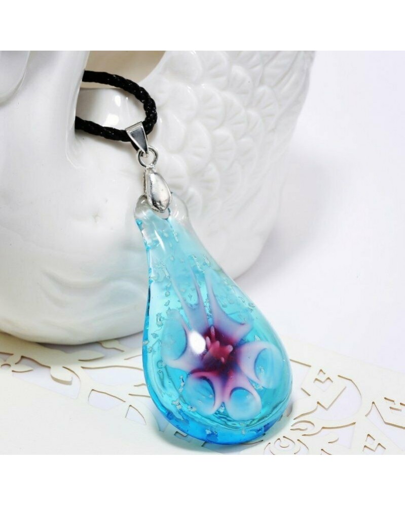 Lila vízcsepp virág - Női Lampwork Murano üveg vízcsepp levél virág nyaklánc medál báj ajándék