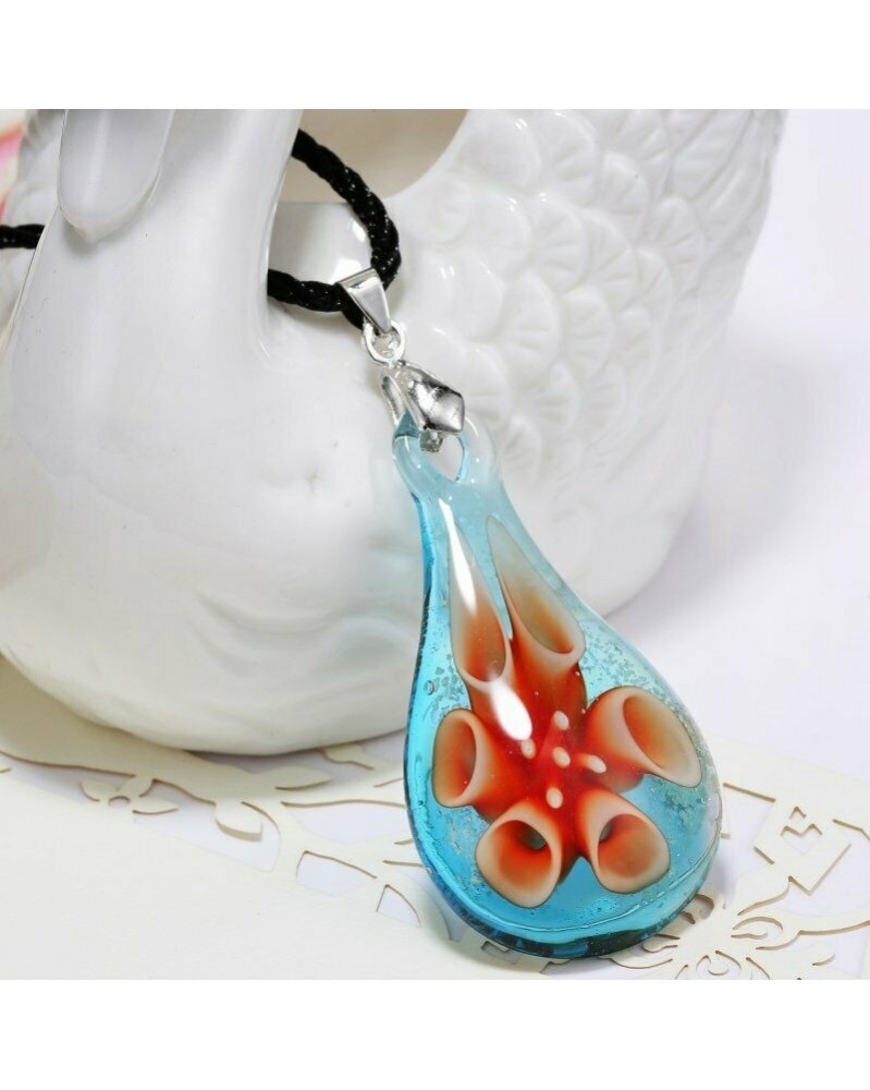 Narancssárga vízcsepp virág - Női Lampwork Murano üveg vízcsepp levél virág nyaklánc medál báj ajándék
