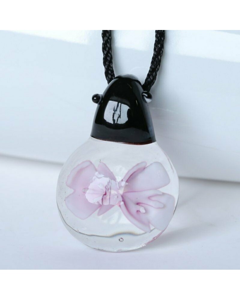 Rózsaszín katicabogár virág - Női Lampwork Murano üveg vízcsepp levél virág nyaklánc medál báj ajándék