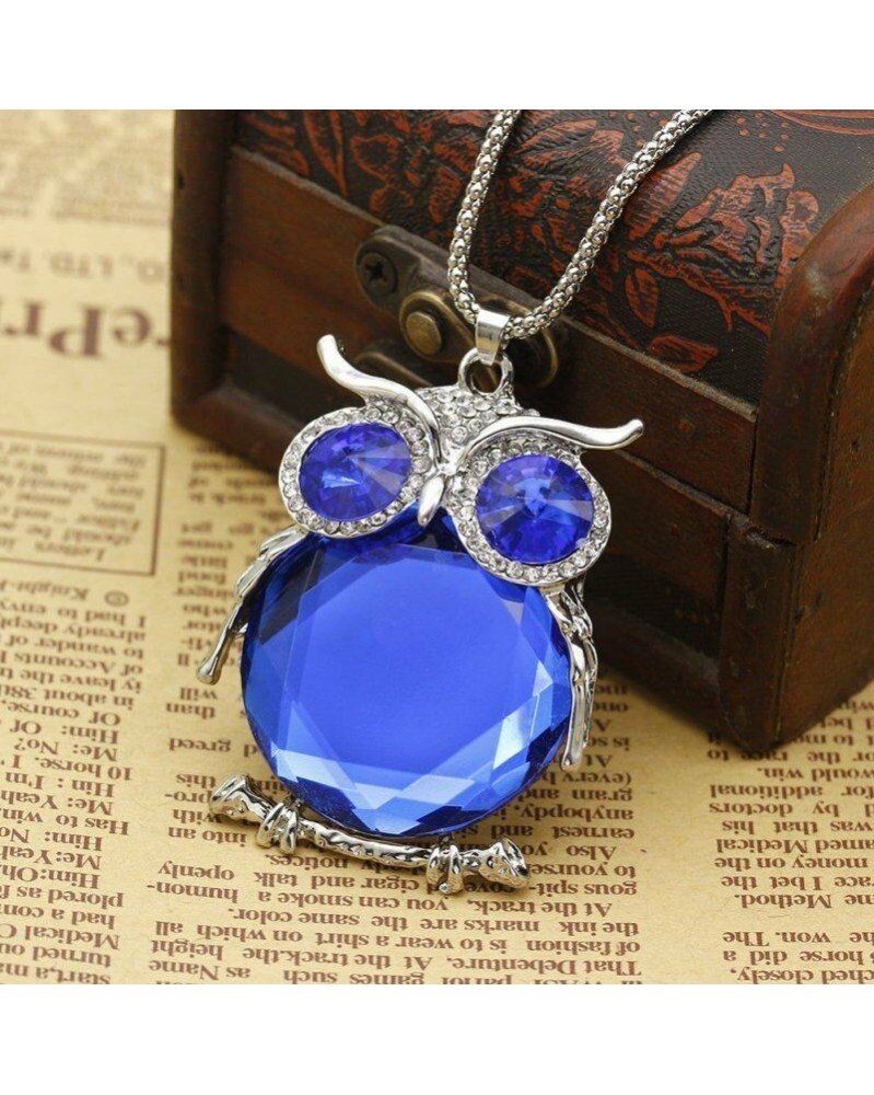 Kék - Női divat aranyos zafír kristály bagoly medál nyaklánc hosszú pulóver lánc ajándék
