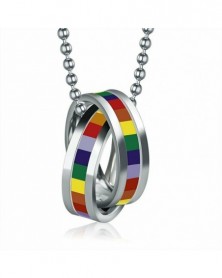 Kerek - Rozsdamentes acél szivárvány leszbikus férfiak meleg LMBT büszkeség medál nyaklánc barátság