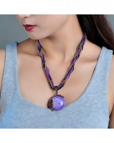 Lila - Retro etnikai stílusú rövid pulóveres lánc gyöngy medál nyaklánc kézzel készített ékszerek