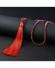 Piros - Bájos női selyem bojt kristály medál nyaklánc hosszú pulóveres lánc ékszer ajándék
