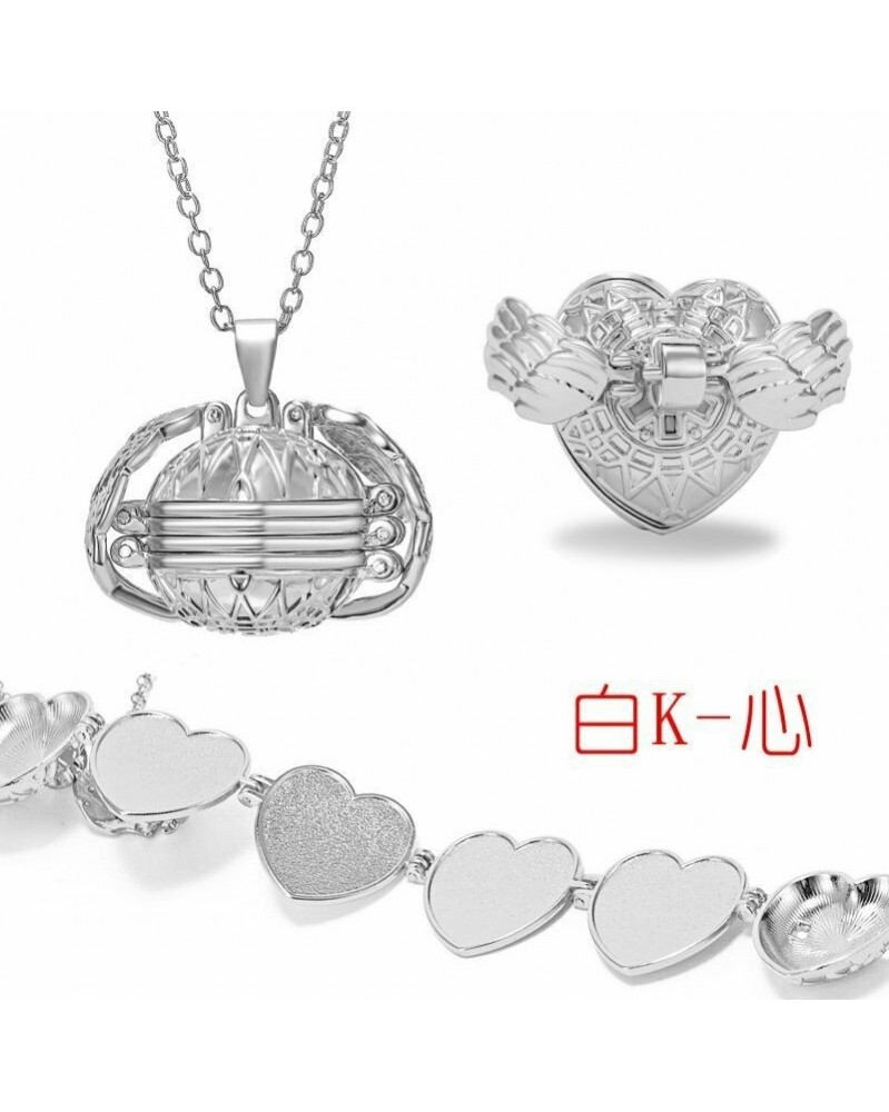 Fehér K szív - 4 fénykép Varázsszív Angyalszárnyak Emlékmű Bővítő Nyakék Nyaklánc Családi Ajándék