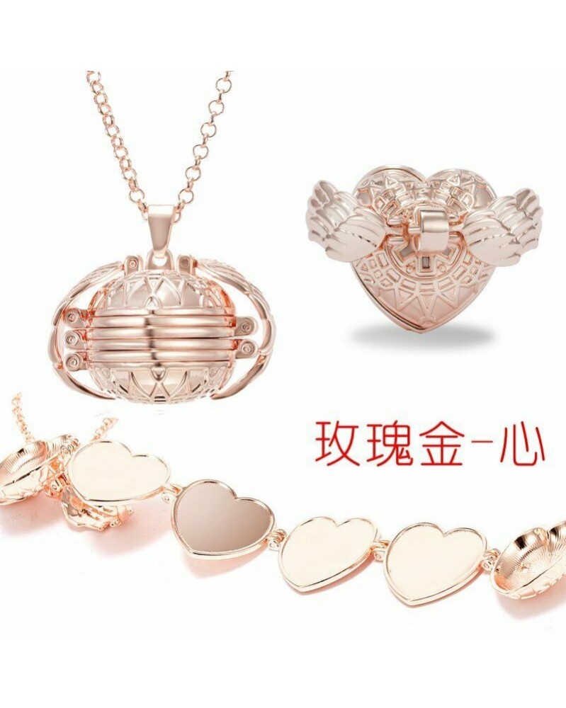 Rózsaarany szív - 4 fotó Varázsszív Angyalszárnyak Emlékmű a táska nyaklánc bővítése családi ajándék