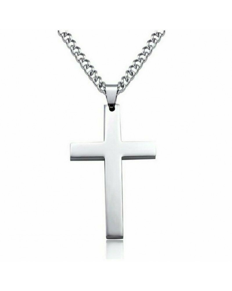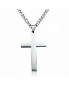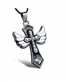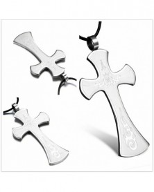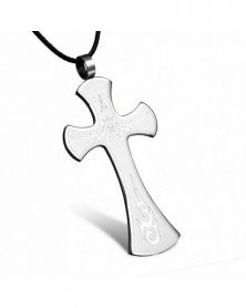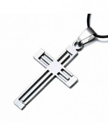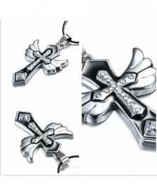 Ezüst kereszt - Divat rozsdamentes acél kereszt kristály medál nyaklánc bőr lánc punk stílus