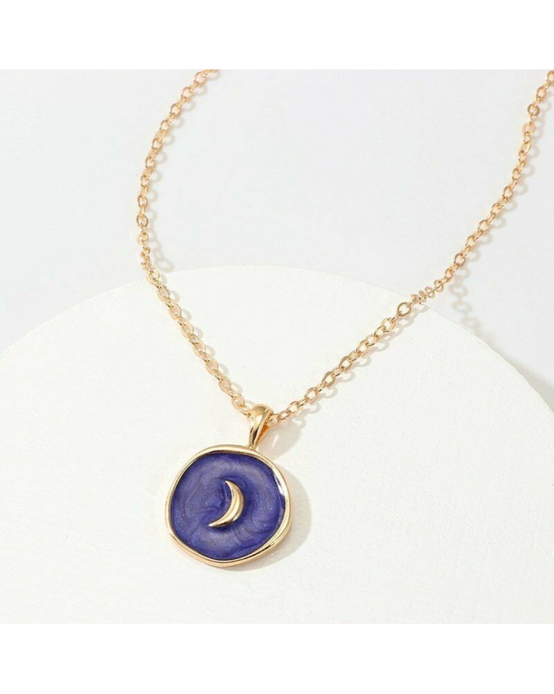 Sötétkék Hold - Divat geometriai kerek choker lánc csillagok Hold szív medál női nyaklánc forró