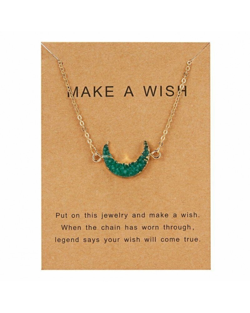 Zöld Hold - Divat női természetes kő Hold kerek gyanta medál nyaklánc kulcscsomó