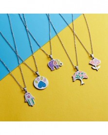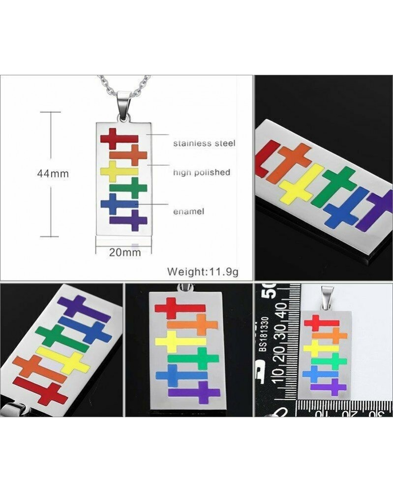 Téglalap - Színes rozsdamentes acél állati zománc nyaklánc medál ezüst lánc női ajándék