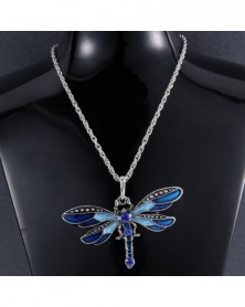 Retro Silver Dragonfly Crystal Pendant Long Sweater Chain Rhinestone Necklace