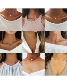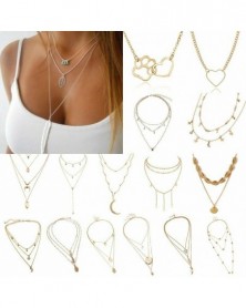 17-arany csillag - Többrétegű divat Boho női női kulcscsont choker nyaklánc báj lánc ékszerek