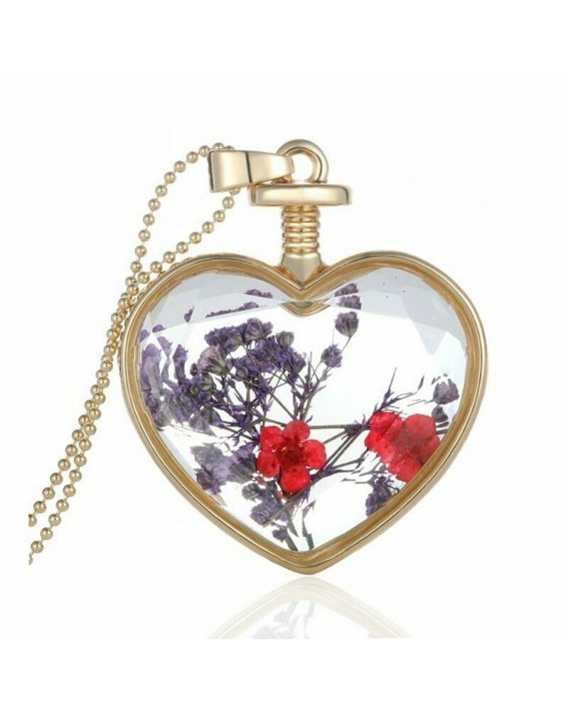 9-arany szív-lila piros virág - Bájos nők természetes természetes szárított virággyanta üveg medál nyakláncok