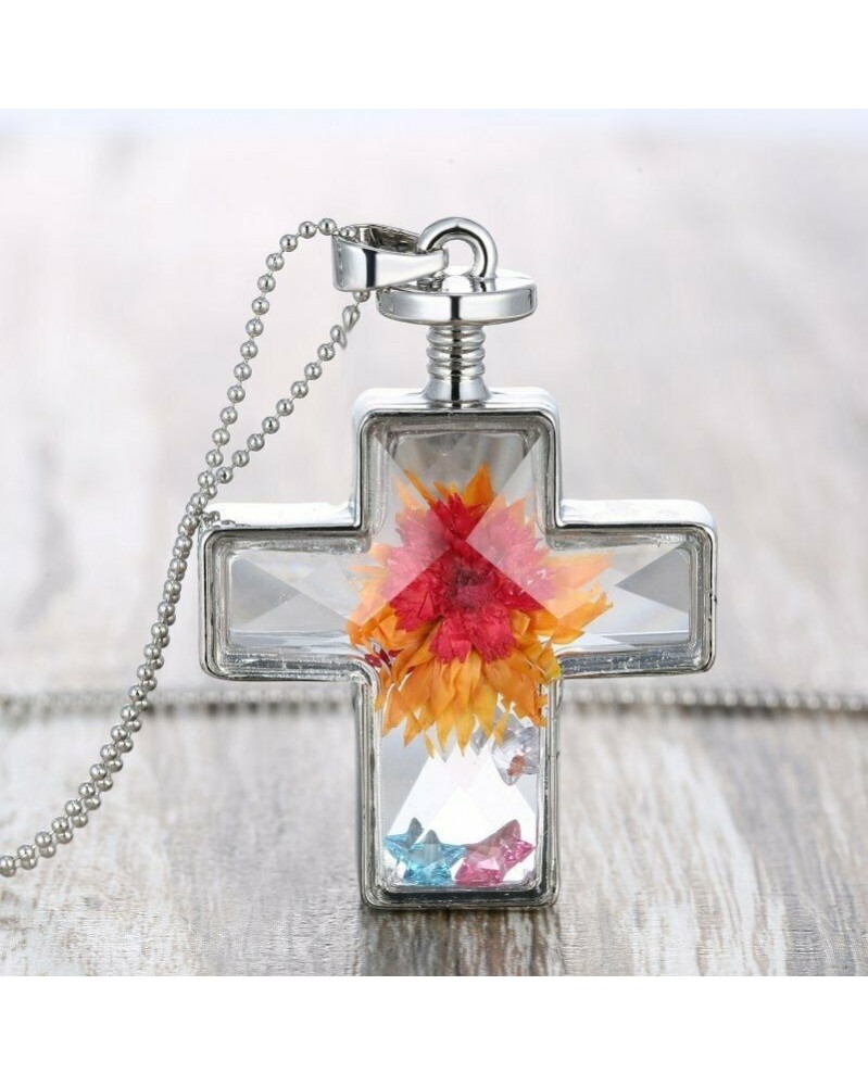 78-Kereszt virág - Bájos nők természetes természetes szárított virággyanta üveg medál nyakláncok ajándékokat