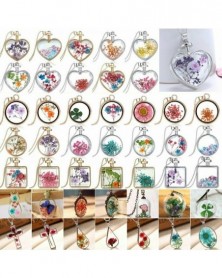 25-arany kerek-rózsaszín virág - Divat nők természetes valódi szárított virág üveg medál nyakláncok báj