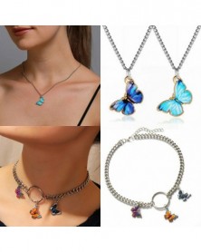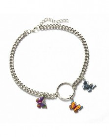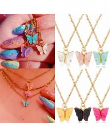 Sötét rózsaszín - Divat pillangó akril medál fojtó sokréteg kulcscsont kristály nyaklánc