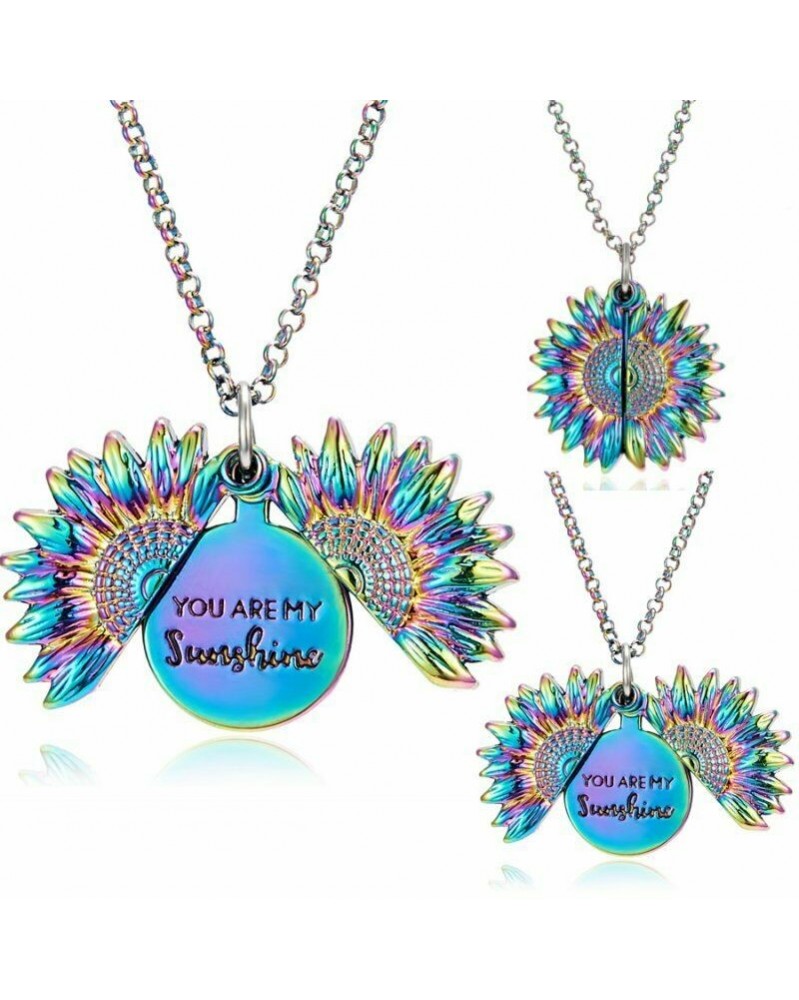 Nincs szín - Színes " You Are My Sunshine" nyitott napraforgó medál nyaklánc choker női ajándék