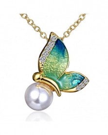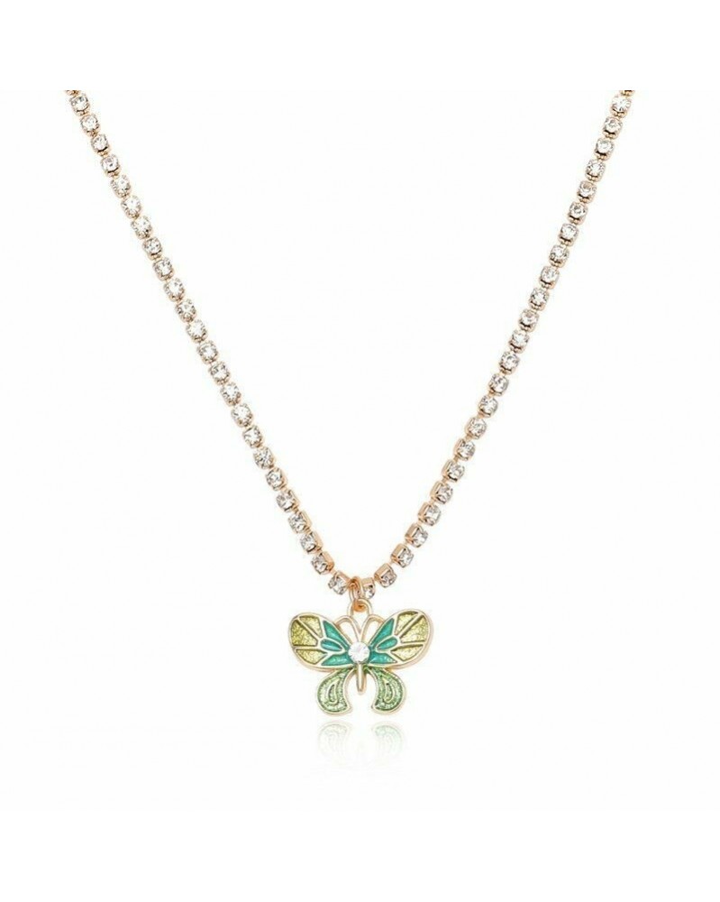 Zöld Pillangó - Női hölgy kristály strassz gyöngy pillangó medál nyaklánc báj ékszerek